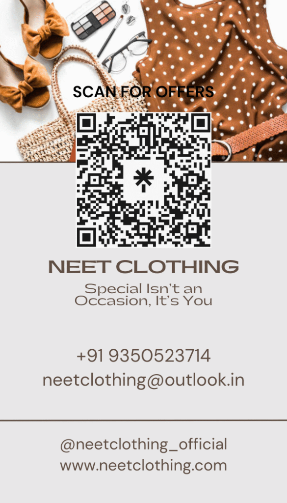 To initiate a return or exchange, please contact us at neetclothing@outlook.in or WhatsApp us on +919350523714 .