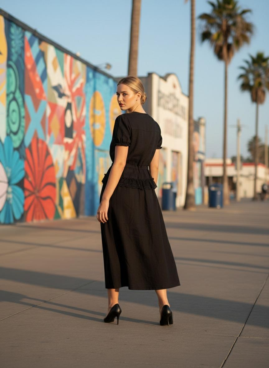 2 PIECE COORD SET LINEN BLACK LACED SHIRT WITH SKIRT