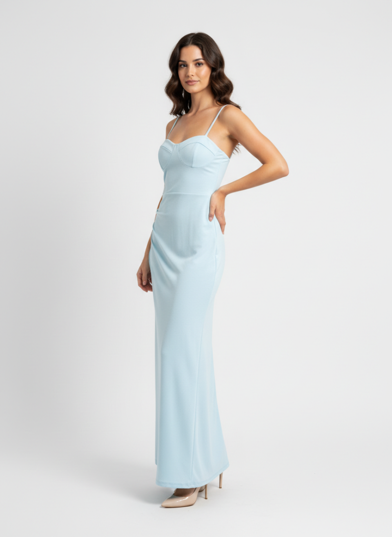 Be the first to review “Blue Long Padded Bodycon Dress”