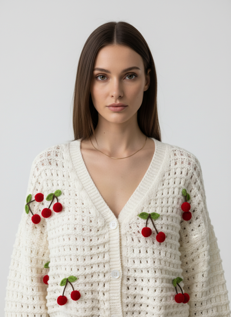 Cream Color Sweater With Cherry Accessory