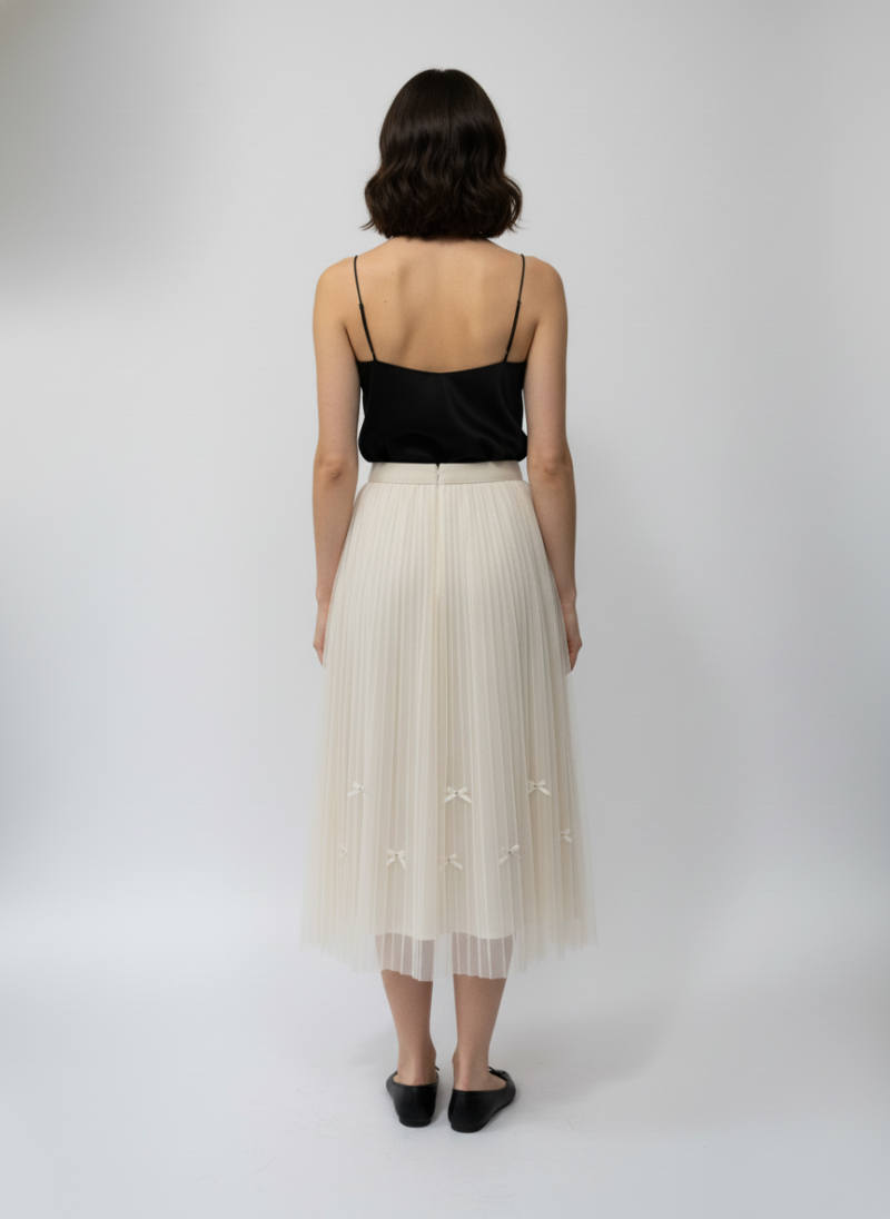 Cream Net Design Long Skirt